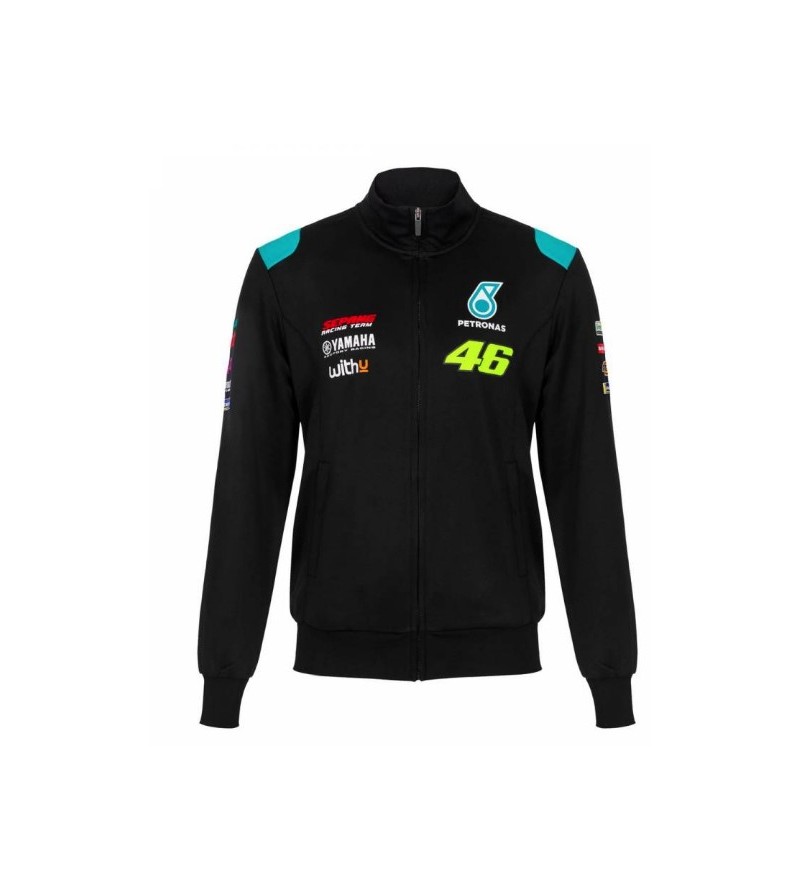 Ce Sweat Yamaha VR46 PETRONAS SRT Arbore Les Logos Yamaha, VR46 Et Petronas. Il Fait Partie De La Collection Team Replica. Avec Ce Sweat Zippé, Restez Au Chaud Sur Le Bord Des Circuits.